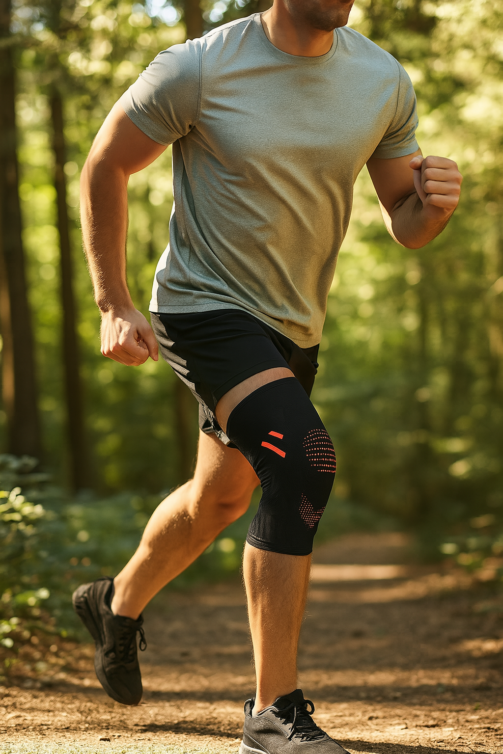 Knäskydd i elastisk textil med extra stabilisatorer